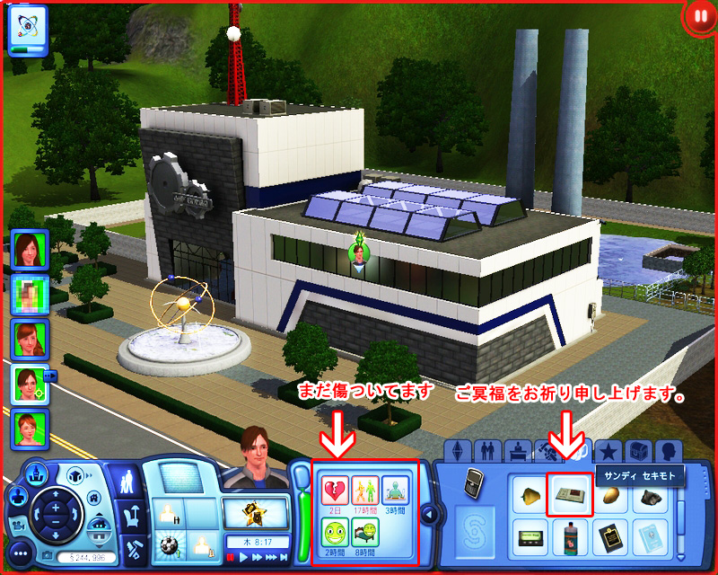 因みになぜか我がビーチでパーティを行った後、シムが事故に会う確立が高い感じがします。